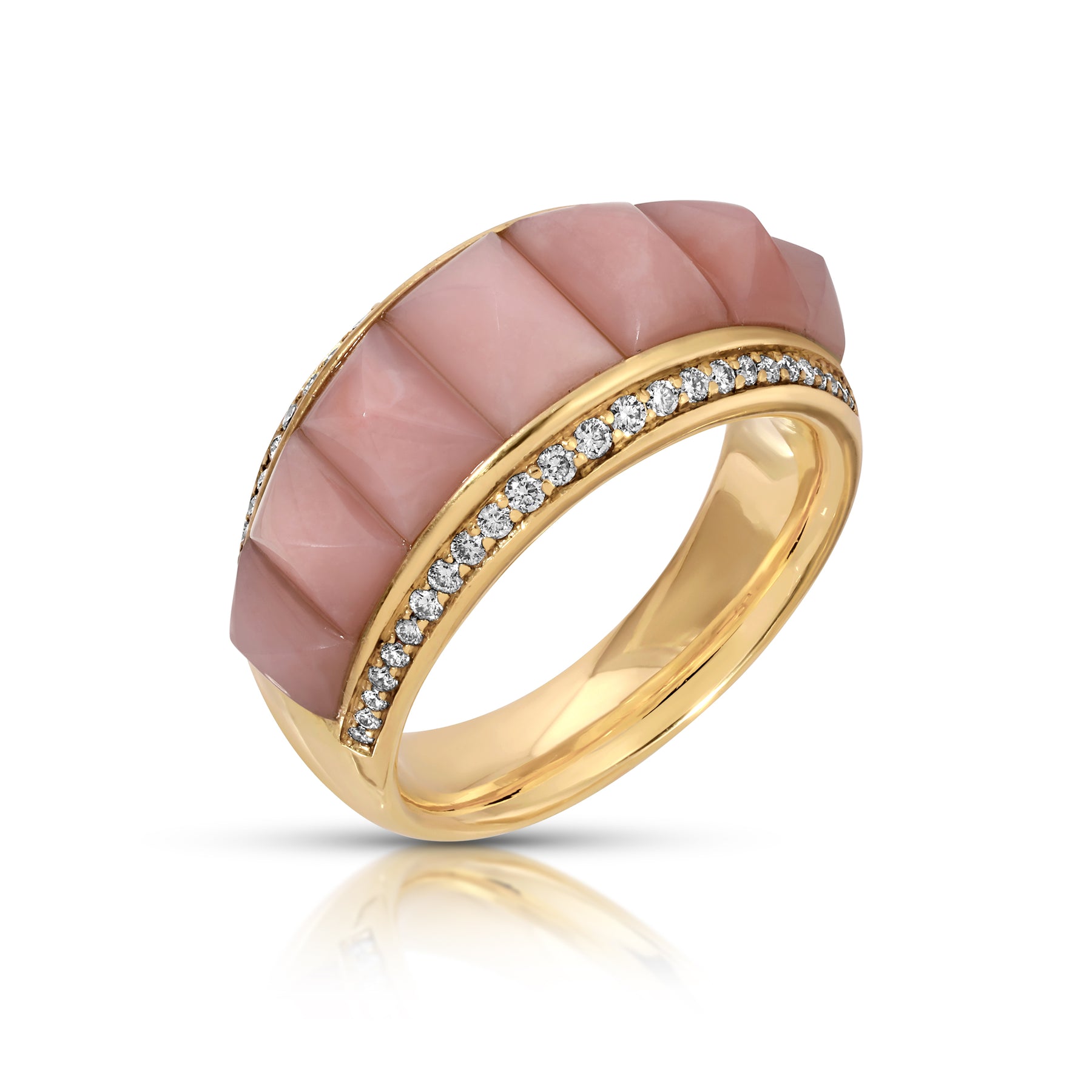 18K Yellow Gold and Diamond with Carved Turquoise or Ruby, Tiger's Eye, Turquoise, Amethyst