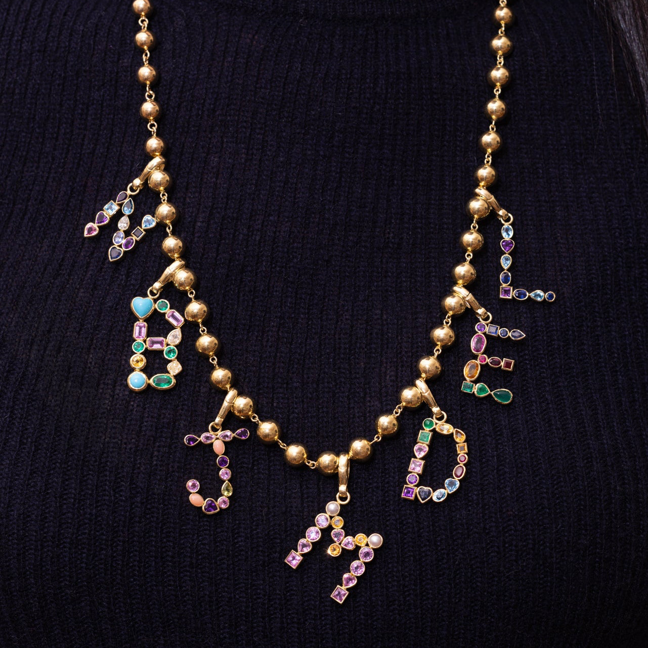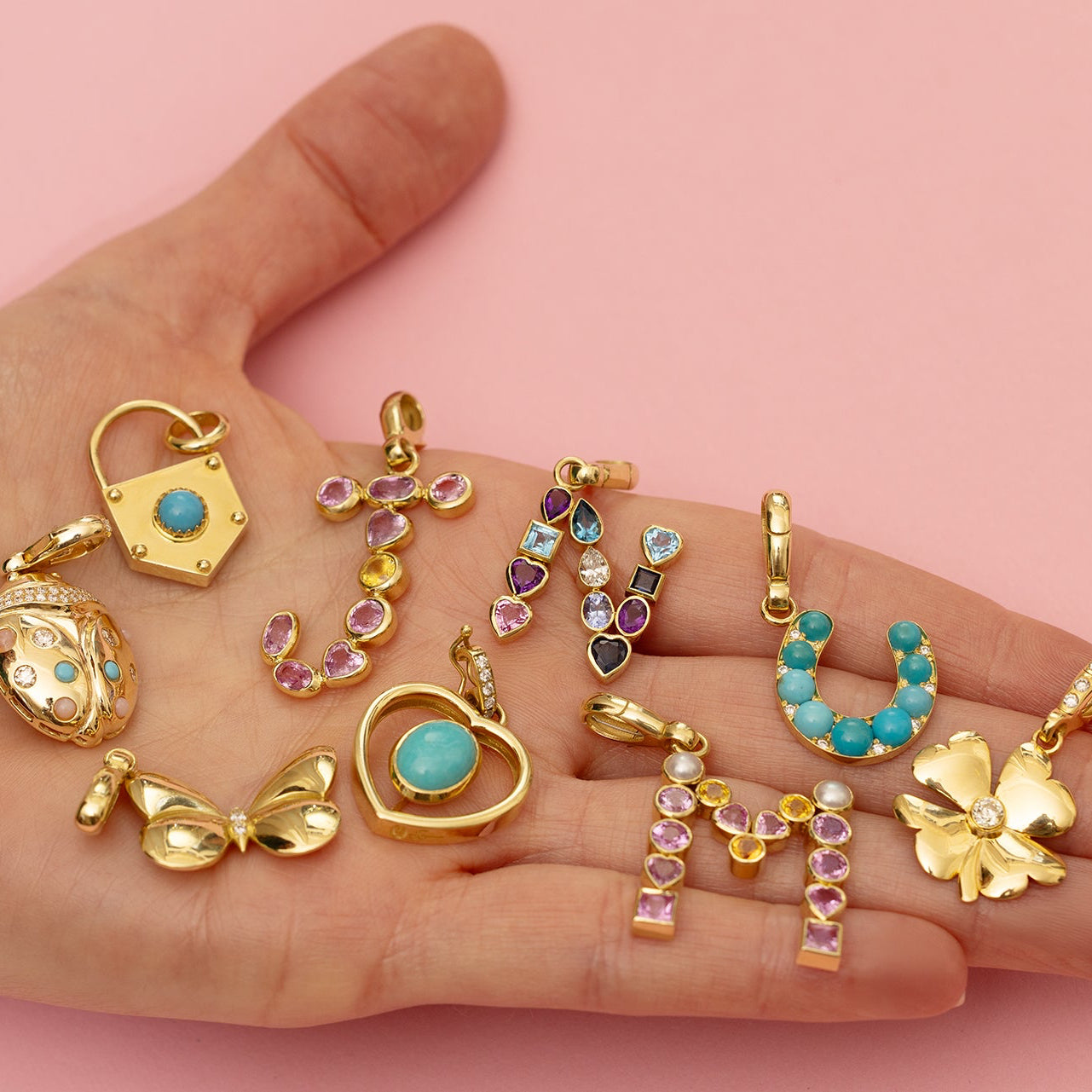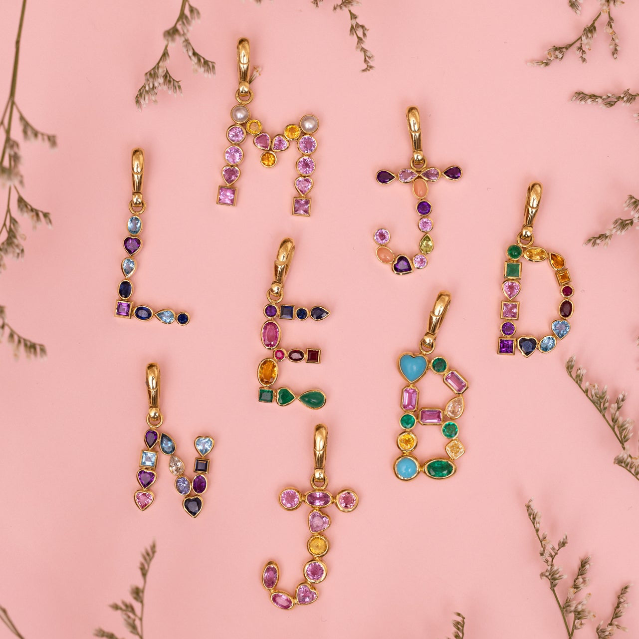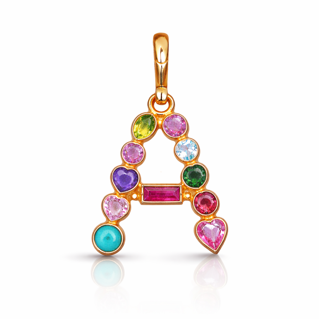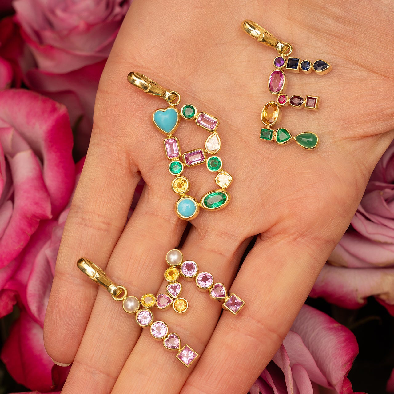 18K Yellow Gold, Pink Sapphire, Yellow Sapphire, Blue Sapphire, Turquoise, Emerald, Diamond