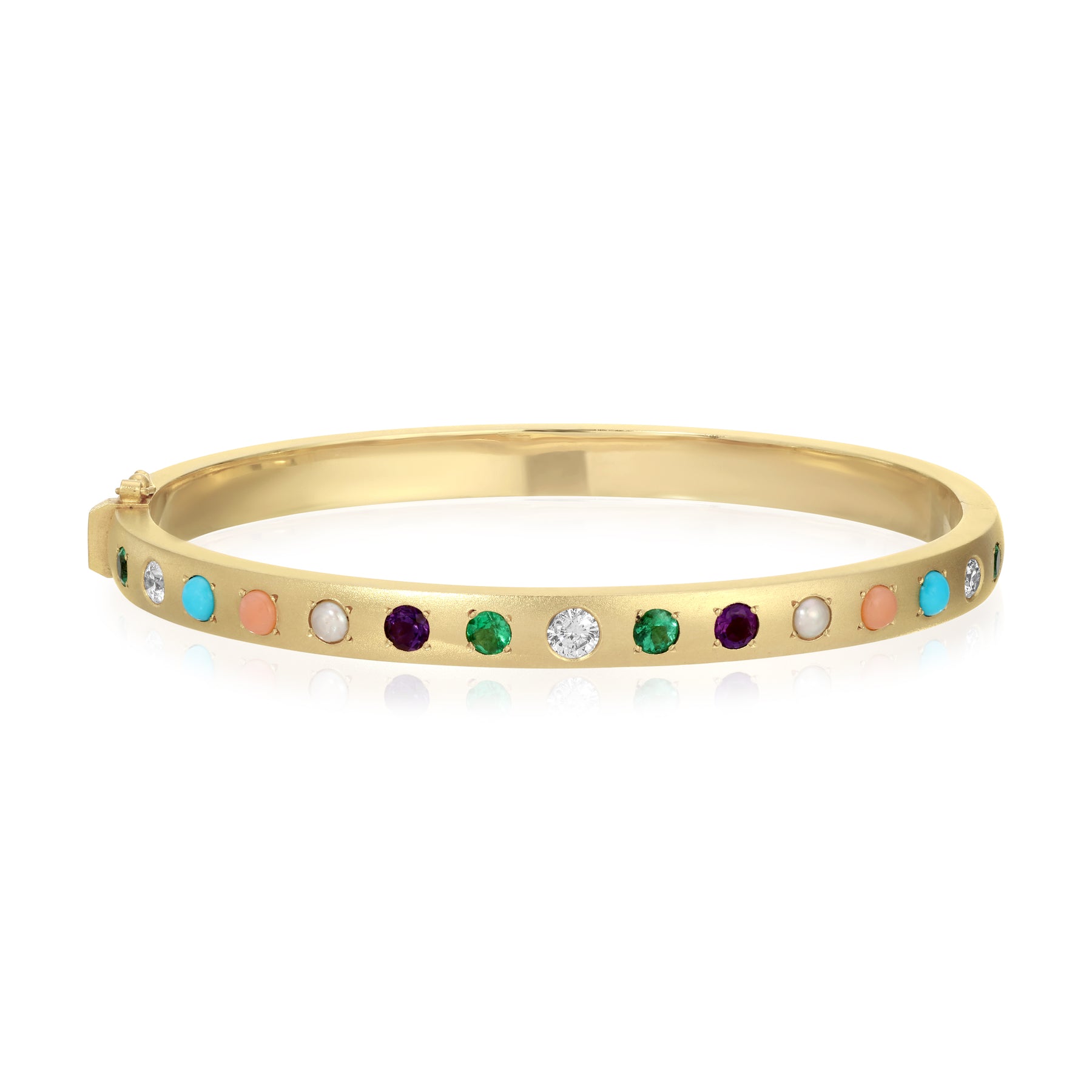 Emerald, Diamond, Turquoise, Coral, Pearl and Blue Sapphire Gypsy Bangle