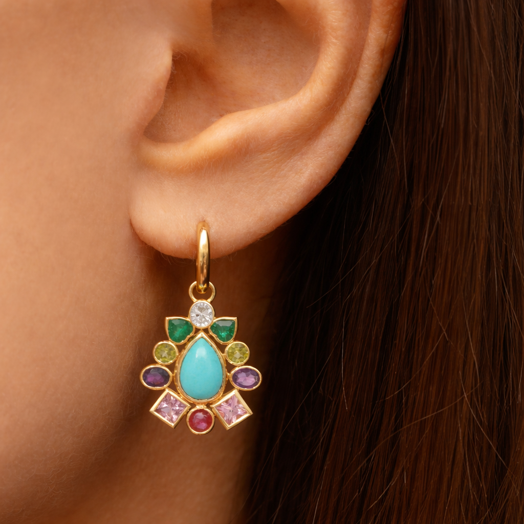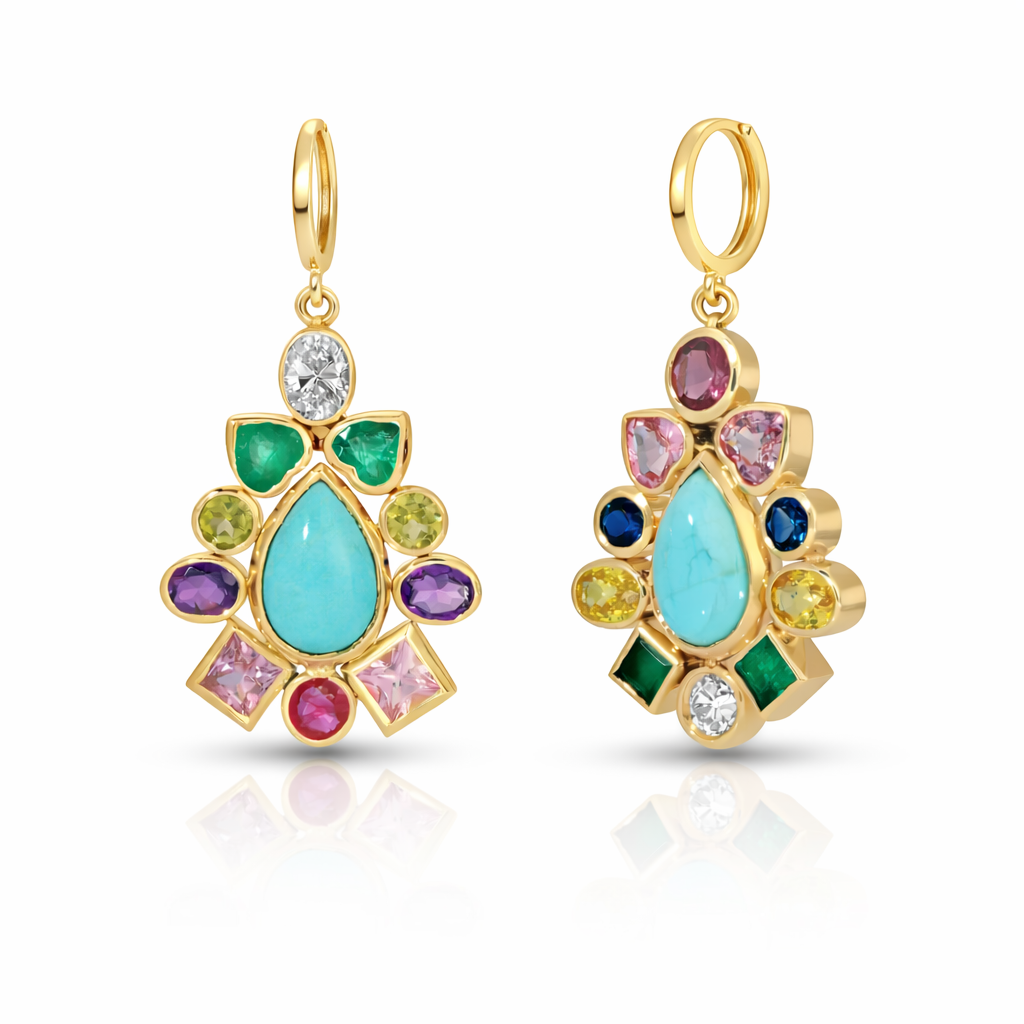 18K Yellow Gold, Turquoise, Ruby, Pink Sapphire, Blue Sapphire, Yellow Sapphire, Peridot, Emerald, Diamond, Amethyst