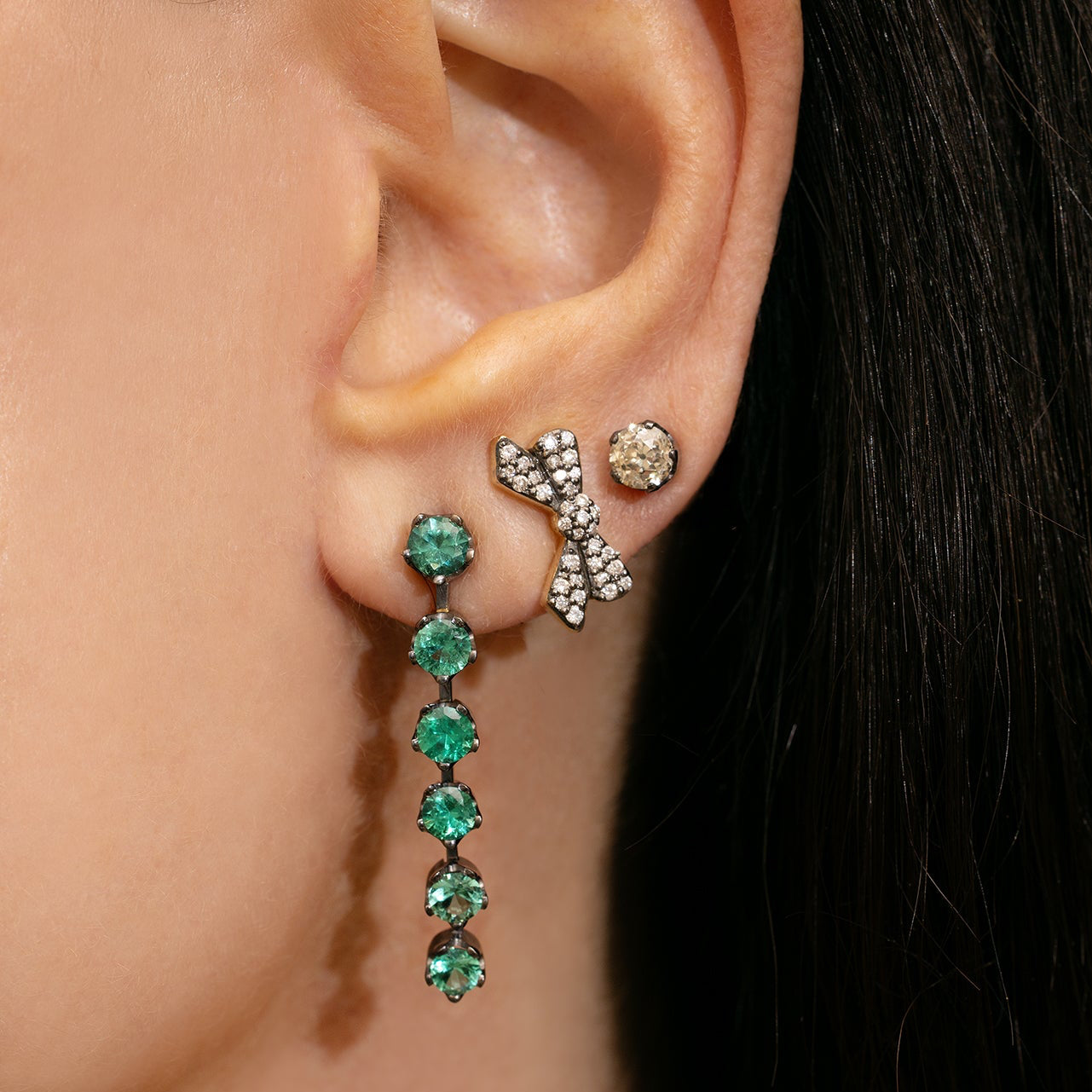 Blackened Diamond Bow Studs