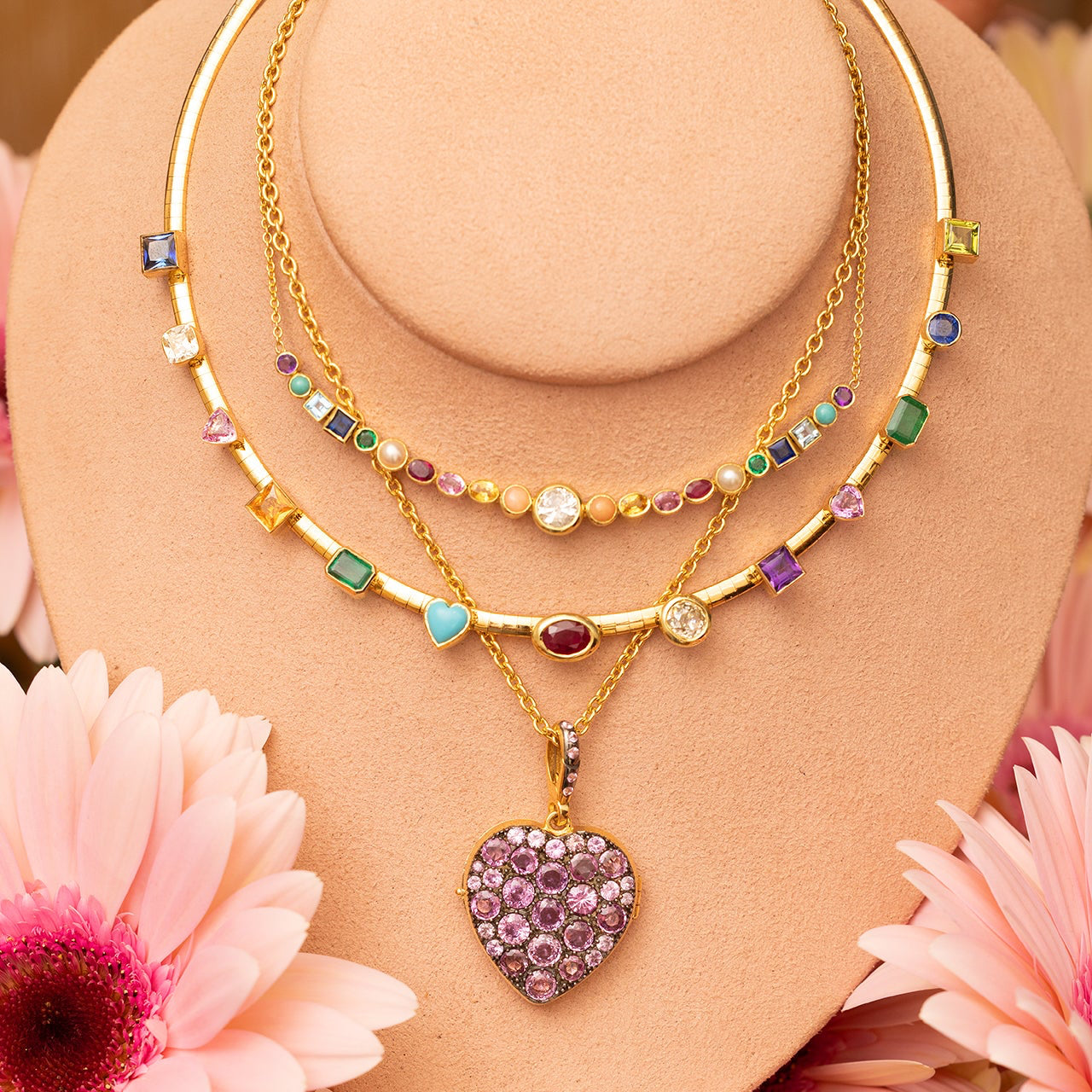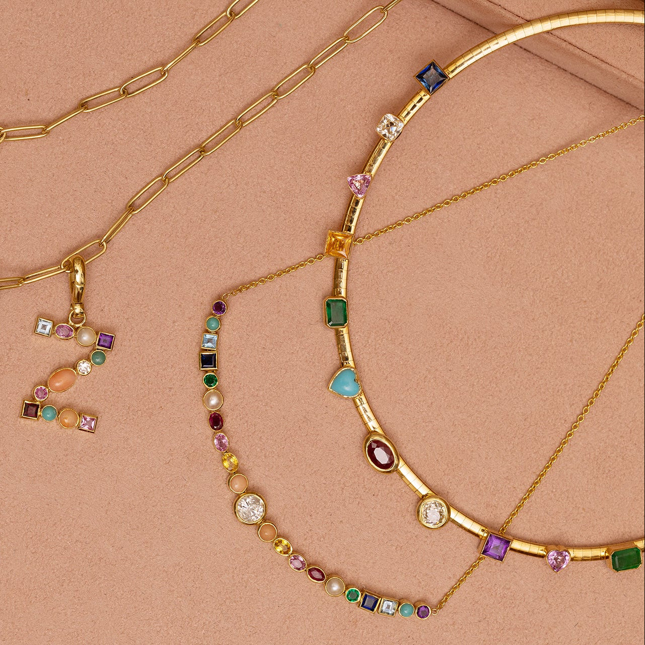 18K Yellow Gold, Diamond, Turquoise, Blue Sapphire, Pink Sapphire, Yellow Sapphire, Emerald, Coral, Amethyst, Citrine, Peridot