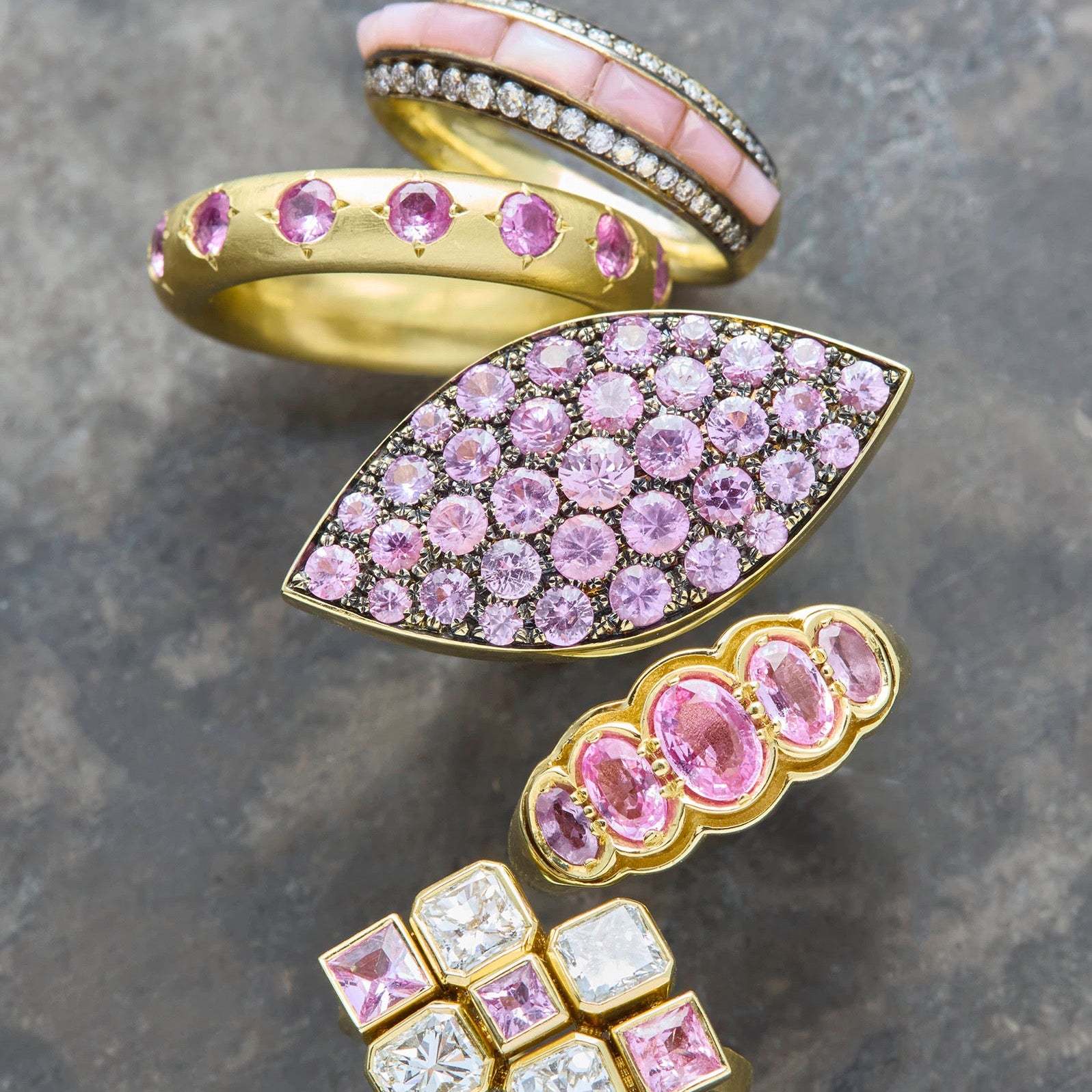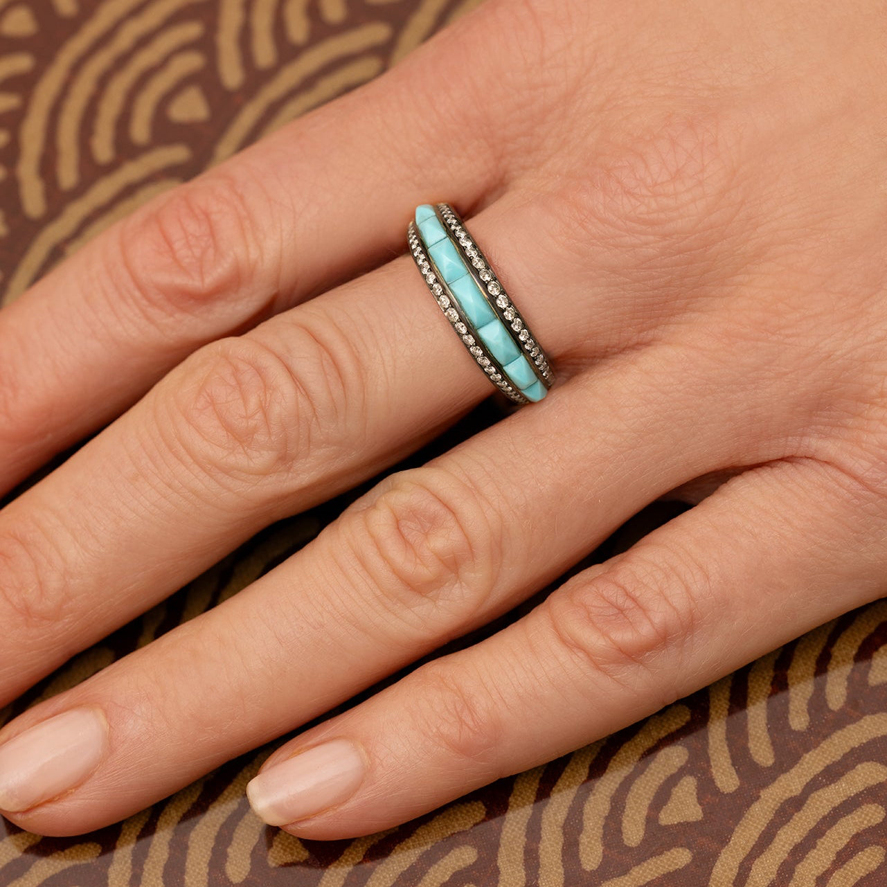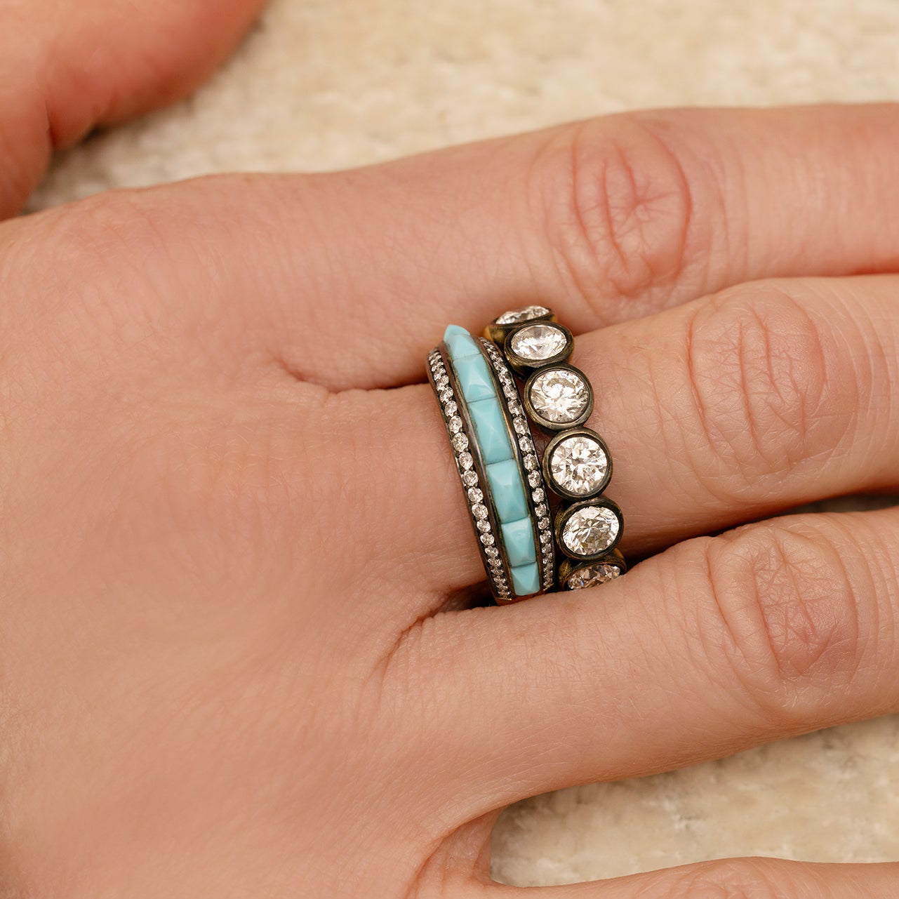 18K Gold, Turquoise, Rose Quartz, or Chrysoprase and Blackened Diamond