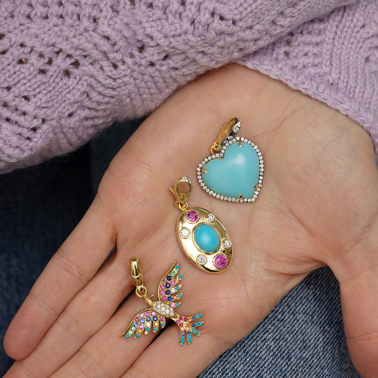18K Yellow Gold, Diamond, Blue Sapphire, Pink Sapphire, Turquoise, Emerald, and Citrine