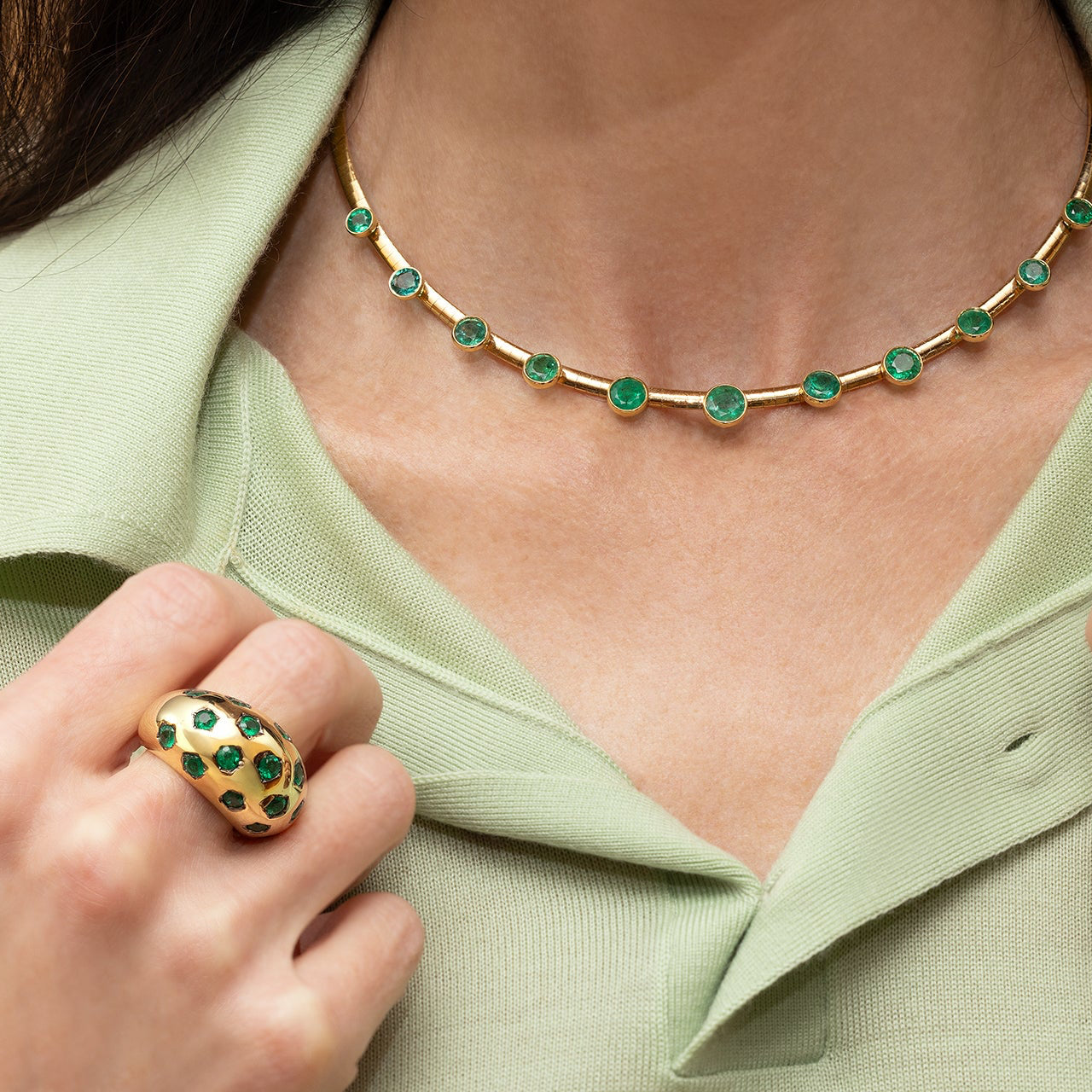 18K Yellow Gold and Diamond, Emerald, Blue Sapphire, Pink Sapphire, Rainbow Sapphire, or Turquoise