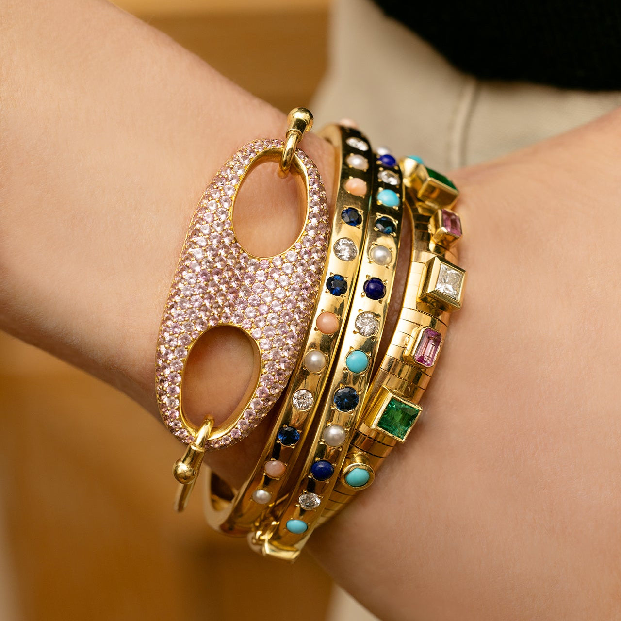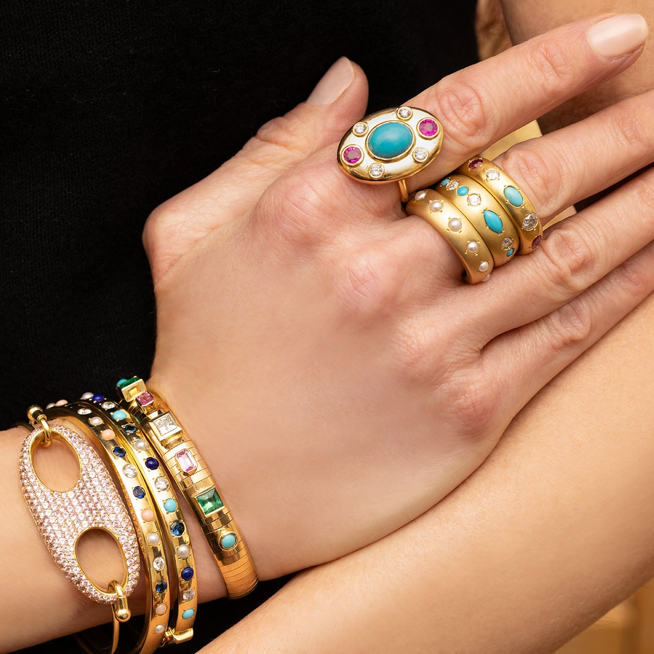 Emerald, Turquoise, Diamond, and Pink Sapphire